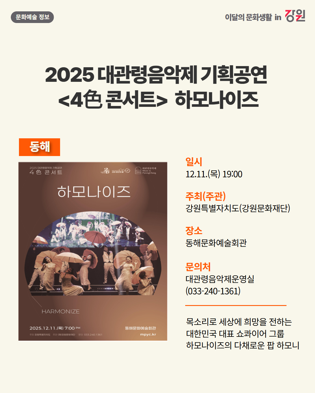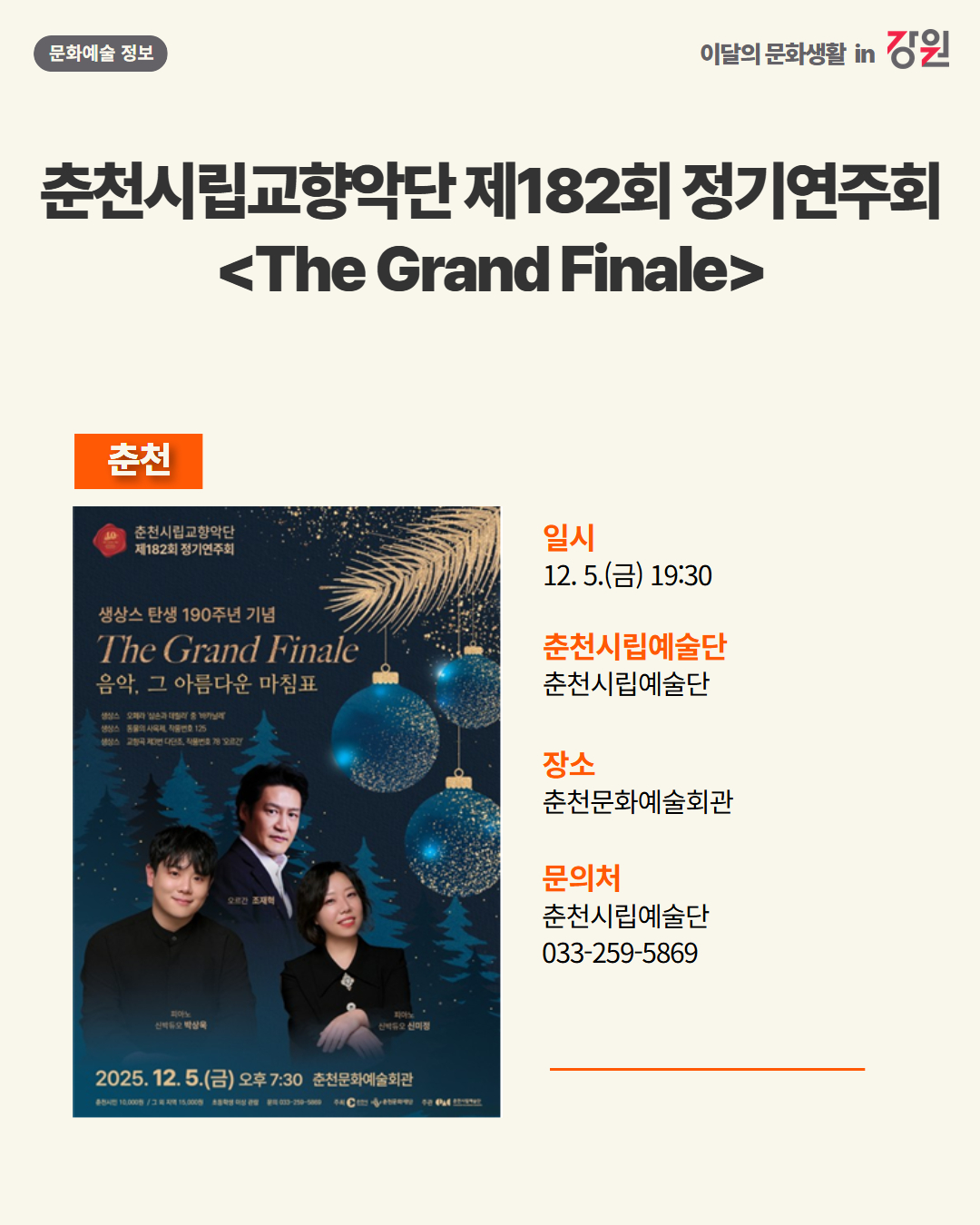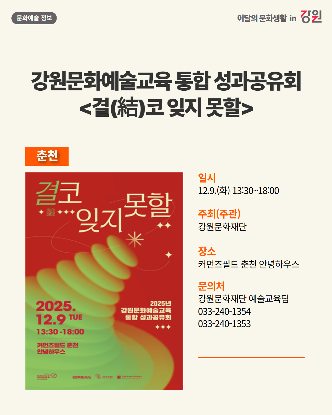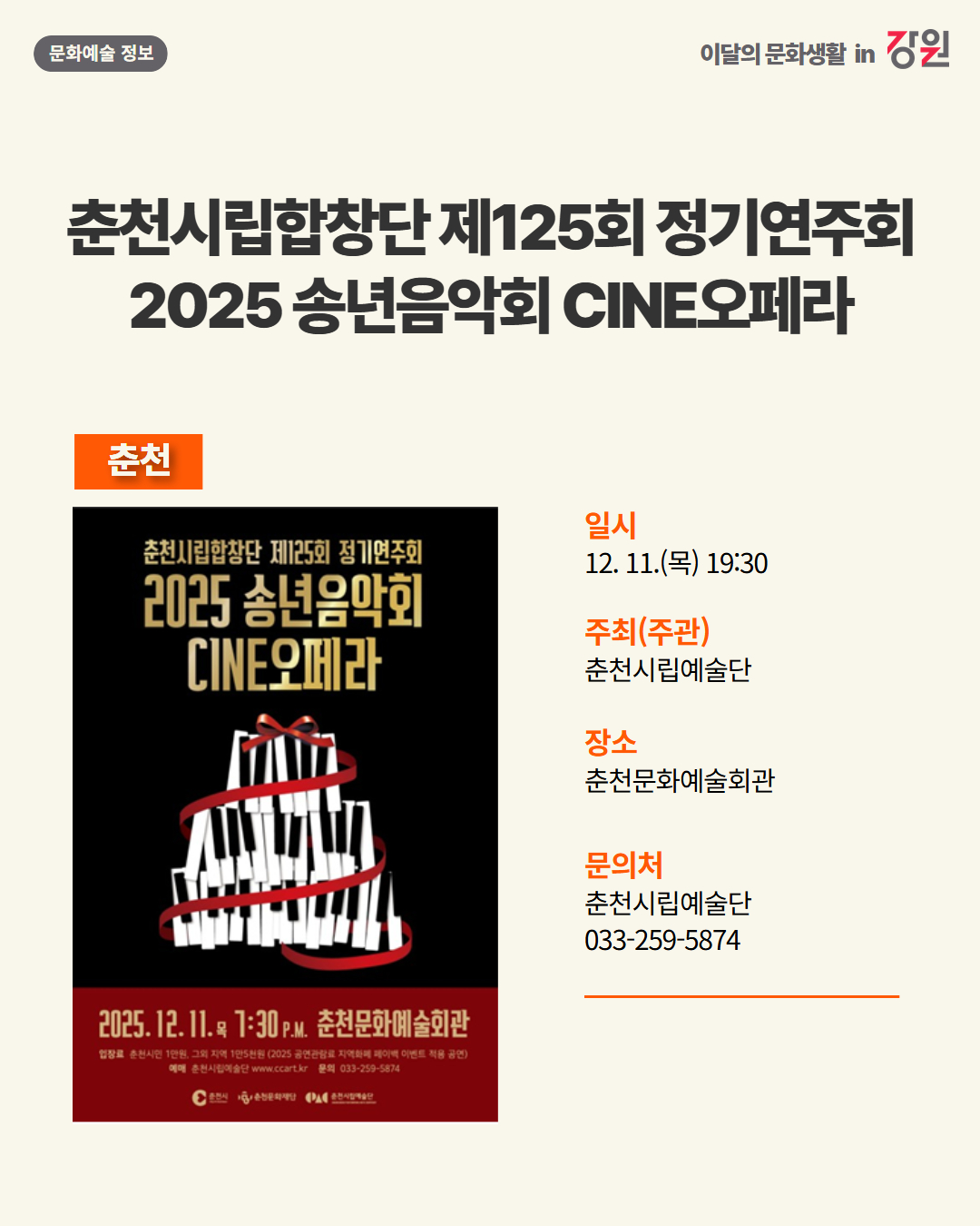2025년 12월 강원 문화예술행사 캘린더