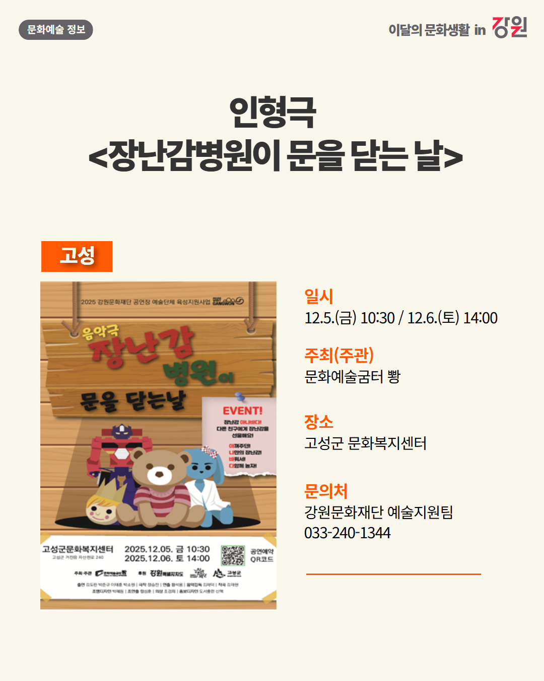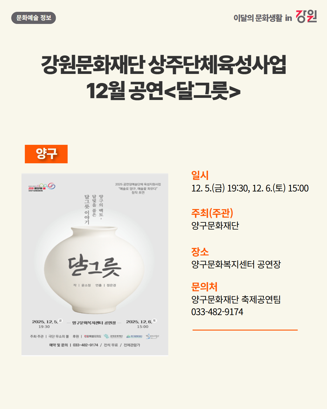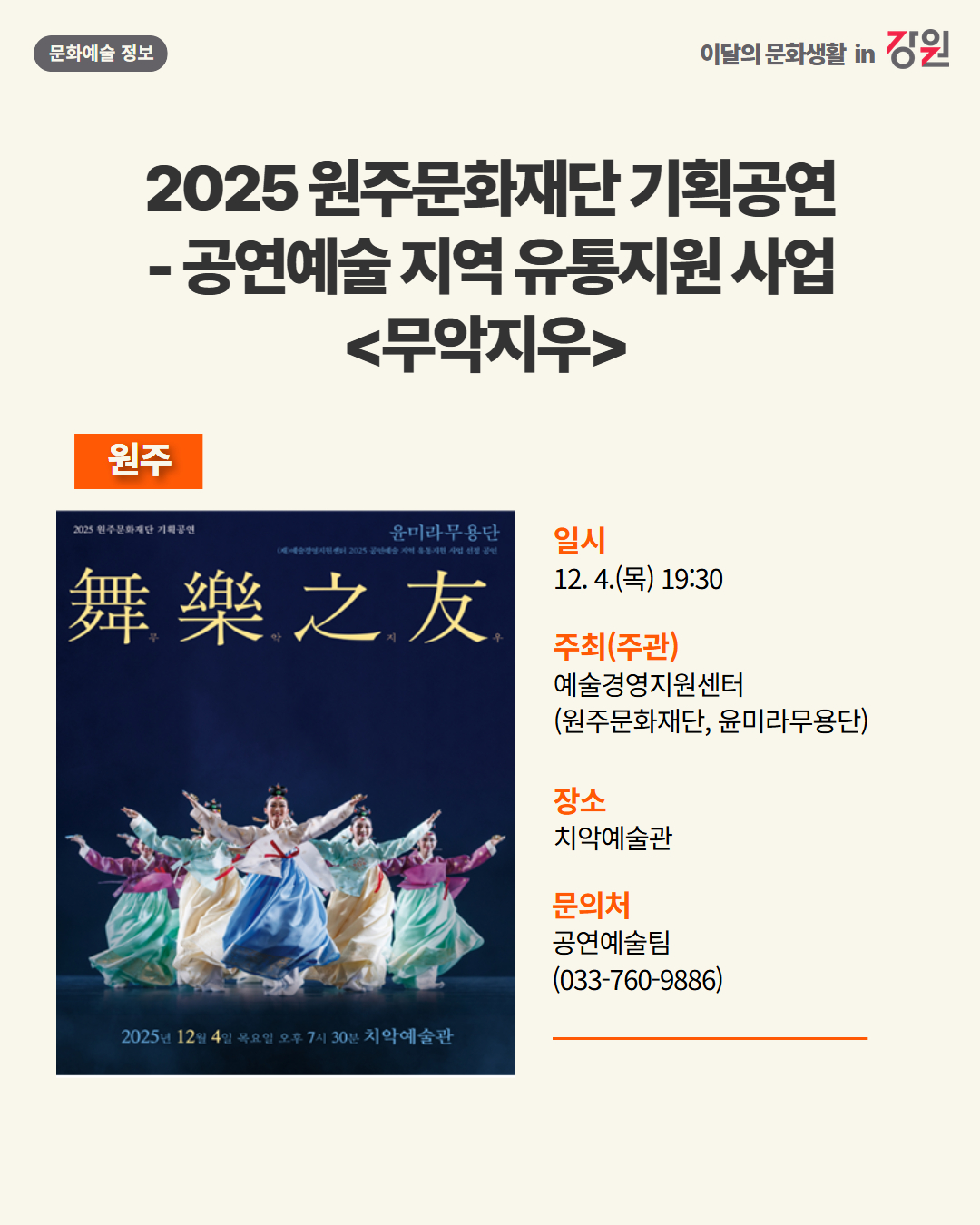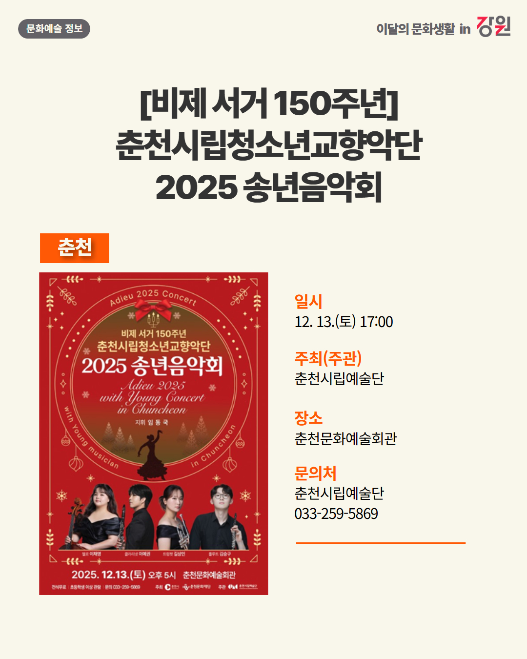 2025년 12월 강원 문화예술행사 캘린더