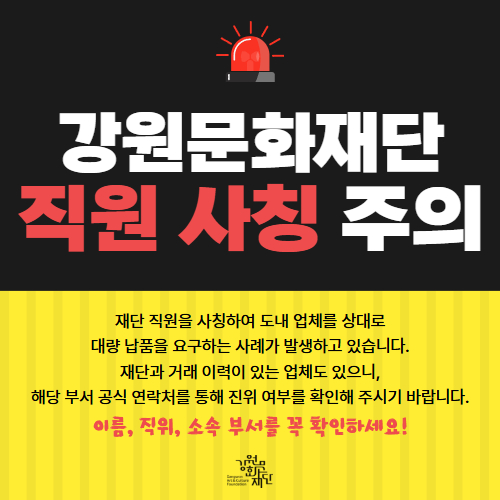 재단 직원을 사칭하여 대량 물품 납품을 유도하는 사례가 접수되고 있습니다.