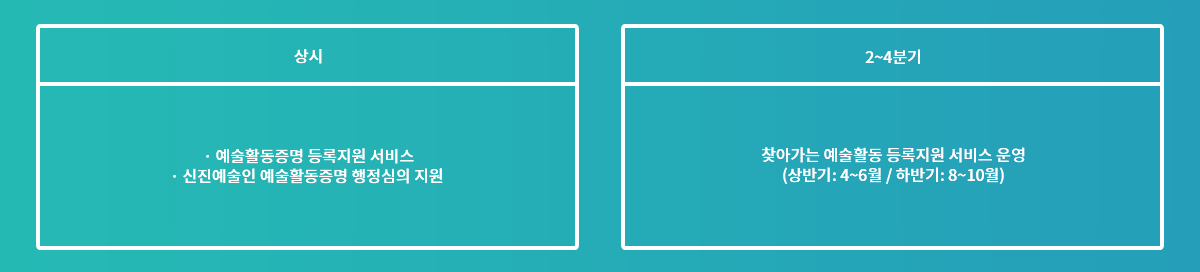 • 상시운영 및 찾아가는 예술활동증명 연 2회 운영